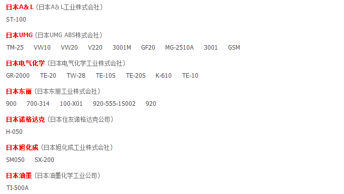 日本進(jìn)口ABS廠家牌號(hào)介紹