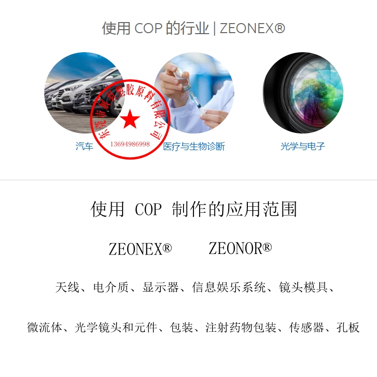 COP顆粒樹脂具有高透明度、低熒光和低雙折射,并且具有防水、防潮、耐熱、耐化學(xué)品甚至機械沖擊的性能,推薦用于高端應(yīng)用。我們提供多種類型的產(chǎn)品。它們都具有顯著的優(yōu)點:重量輕、純度高并且可以高精度成型。ZEONEX ?和ZEONOR ?熱塑性樹脂以20公斤袋裝或500公斤托盤包裝供應(yīng)。
