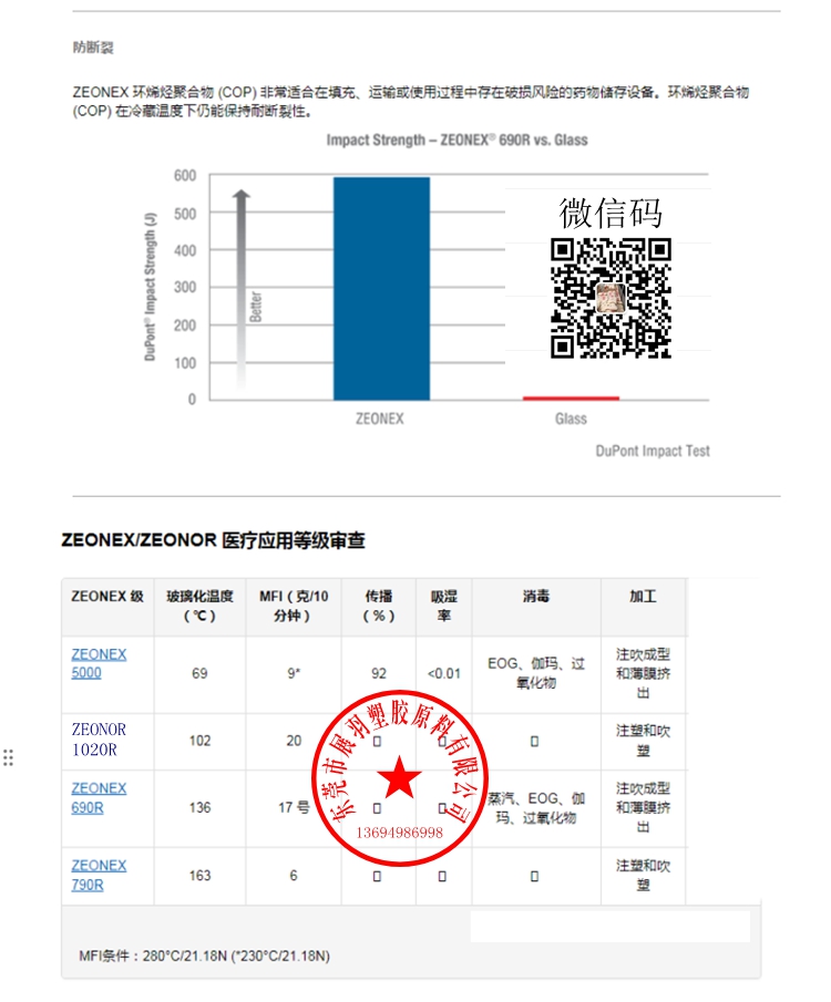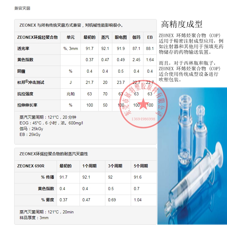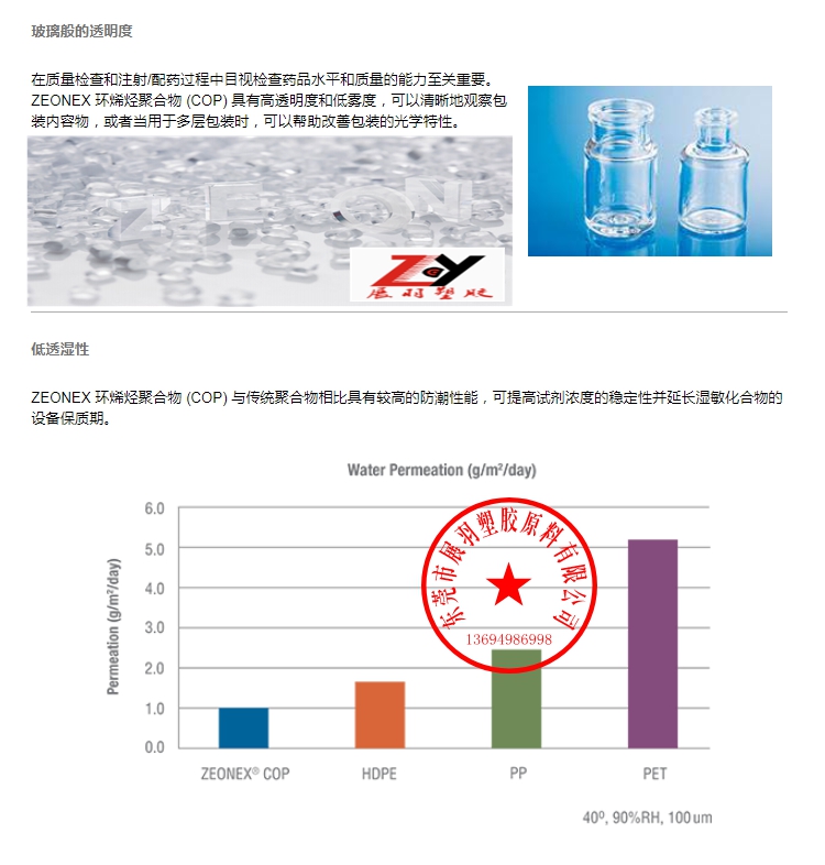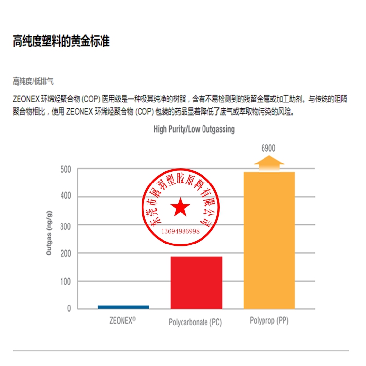 COC日本瑞翁生產(chǎn)的 ZEONEX? 5000 是一種不溶于水、無味、無色的環(huán)烯烴聚合物 (COP) 牌號(hào)。它具有玻璃般的透明度、低蛋白質(zhì)吸收和精密成型性。它具有高透明度、低霧度、低吸水性、耐破裂性和耐化學(xué)性。該等級(jí)提供高純度/低排氣和出色的防潮性。它顯示出與伽馬、過氧化物和環(huán)氧乙烷氣體 (EOG) 的滅菌兼容性。ZEONEX? 5000 通過注射吹塑和薄膜擠出加工而成。它用于預(yù)充式注射器、西林瓶、瓶子和其他用于預(yù)充式藥物儲(chǔ)存的藥物輸送裝置。其他應(yīng)用包括腸胃外和凍干生物制藥、高粘度藥物、透明質(zhì)酸以及造影劑的包裝。符合日本藥典、美國藥典(USP 88 Class VI、USP 87)和歐洲藥典。符合ISO 10993標(biāo)準(zhǔn)的要求。