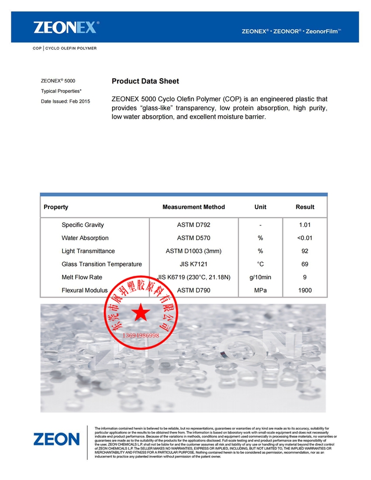 COC醫(yī)療級(jí) ZEONEX 5000 日本瑞翁 環(huán)烯烴聚合物 COP