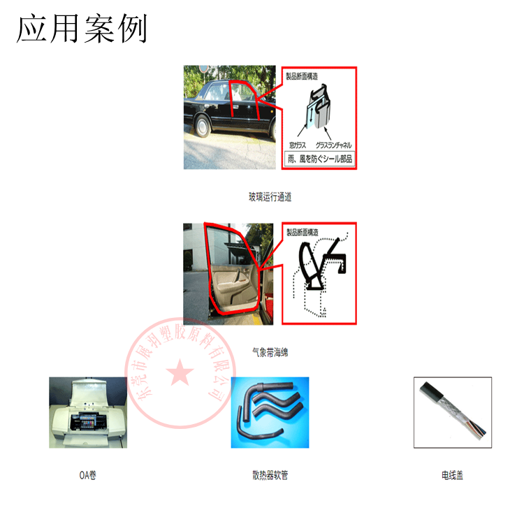 窗導(dǎo)槽密封條、密封條海綿、OA滾筒、散熱器軟管、電線護套線。