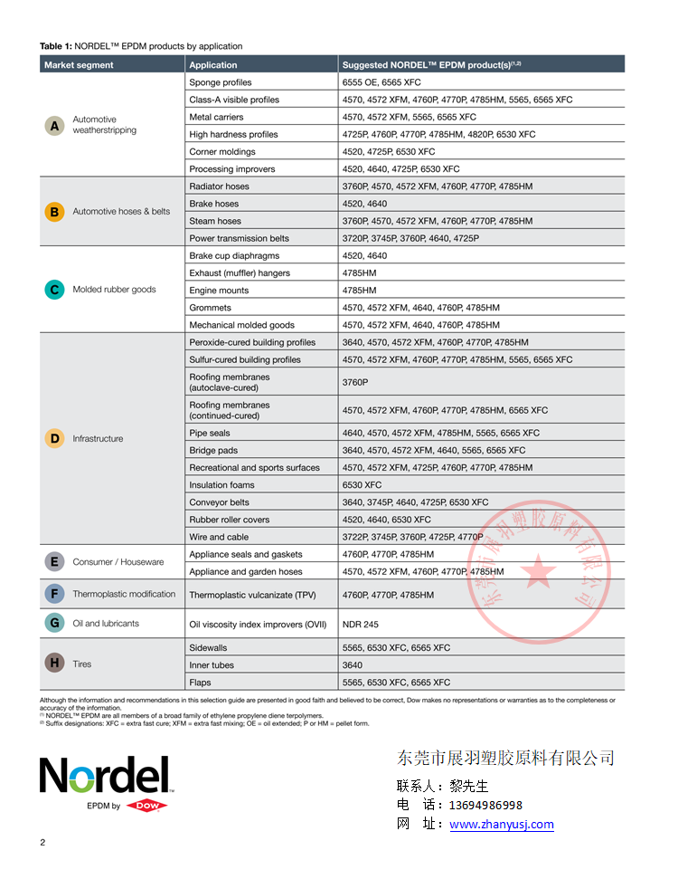 NORDEL IP 3640 美國(guó)陶氏 EPDM 非晶態(tài) 低二烯 三元乙丙橡膠