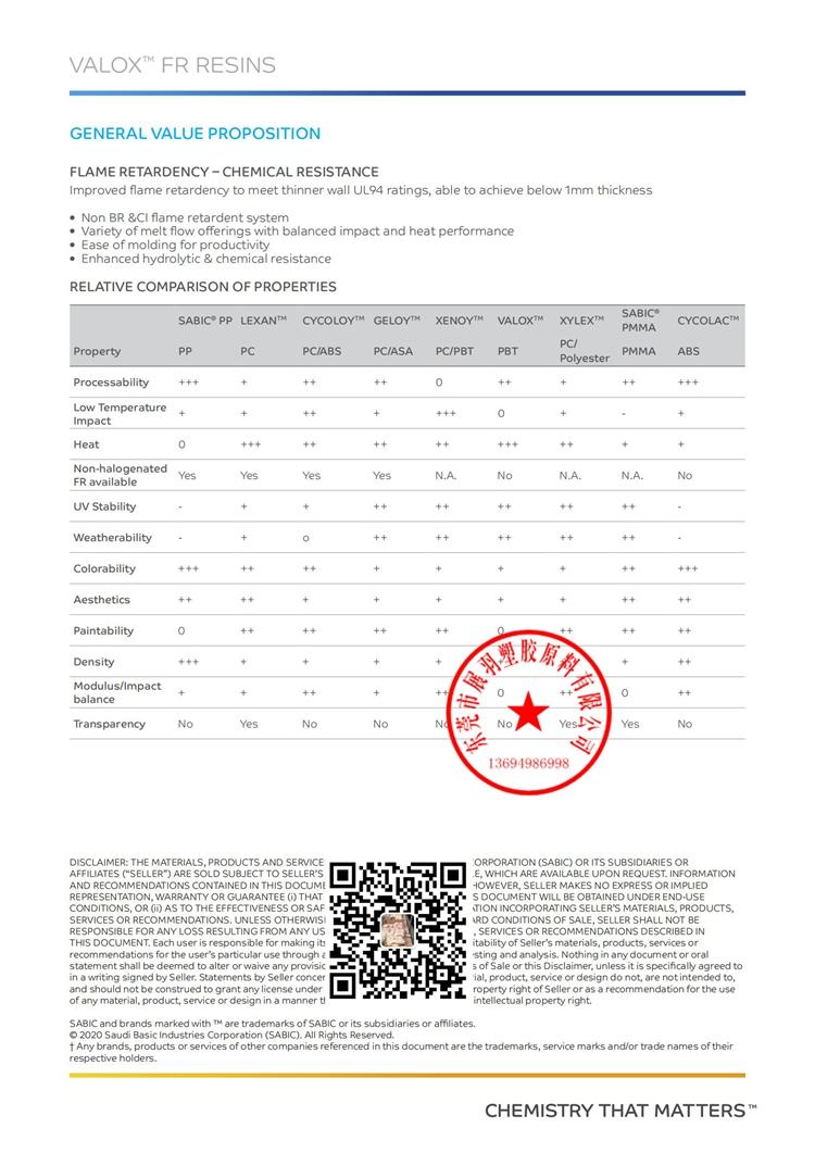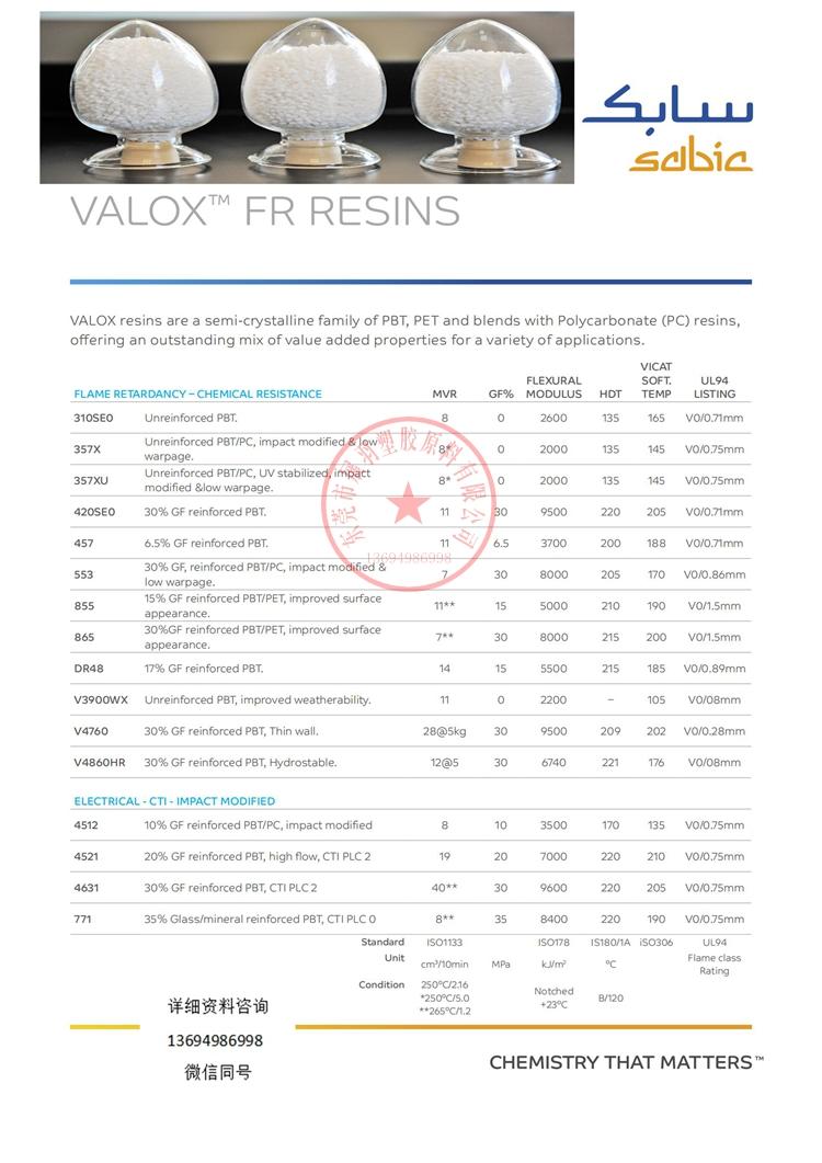 VALOX 310SE0 SABIC 未填充的阻燃聚對(duì)苯二甲酸丁二醇酯 (PBT) 樹脂