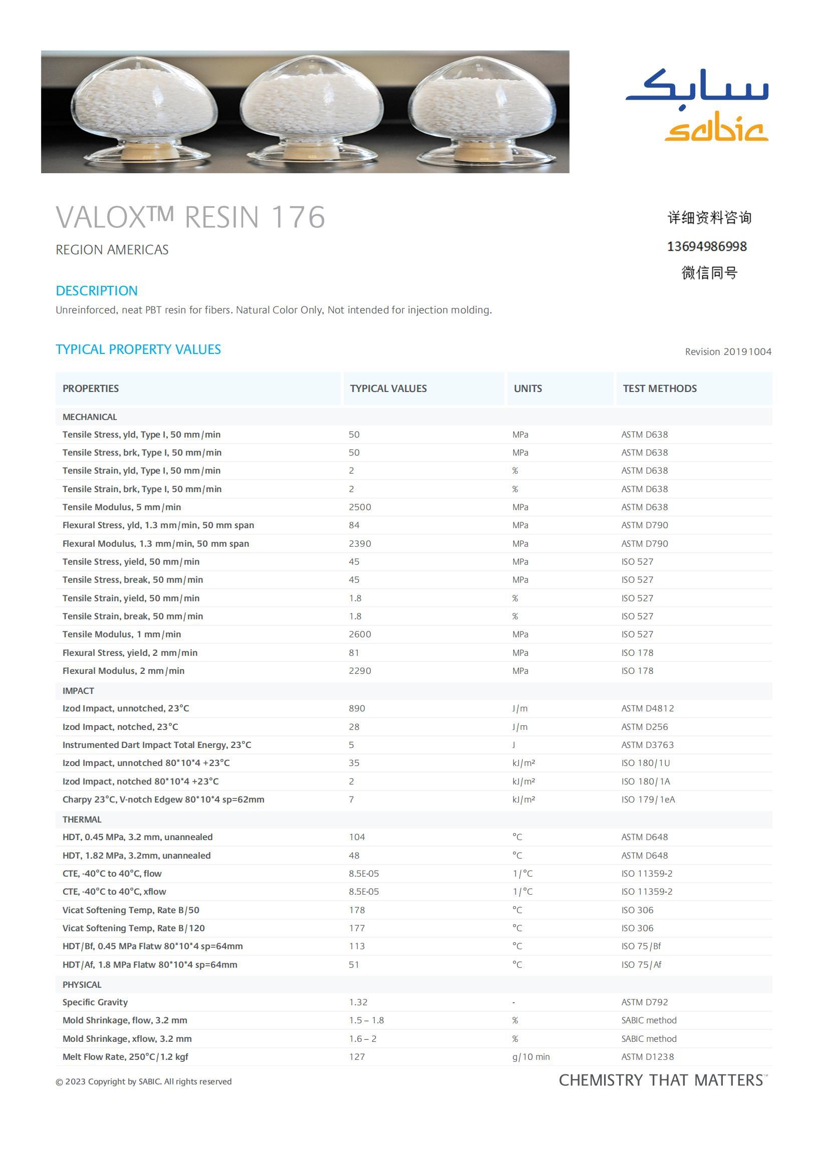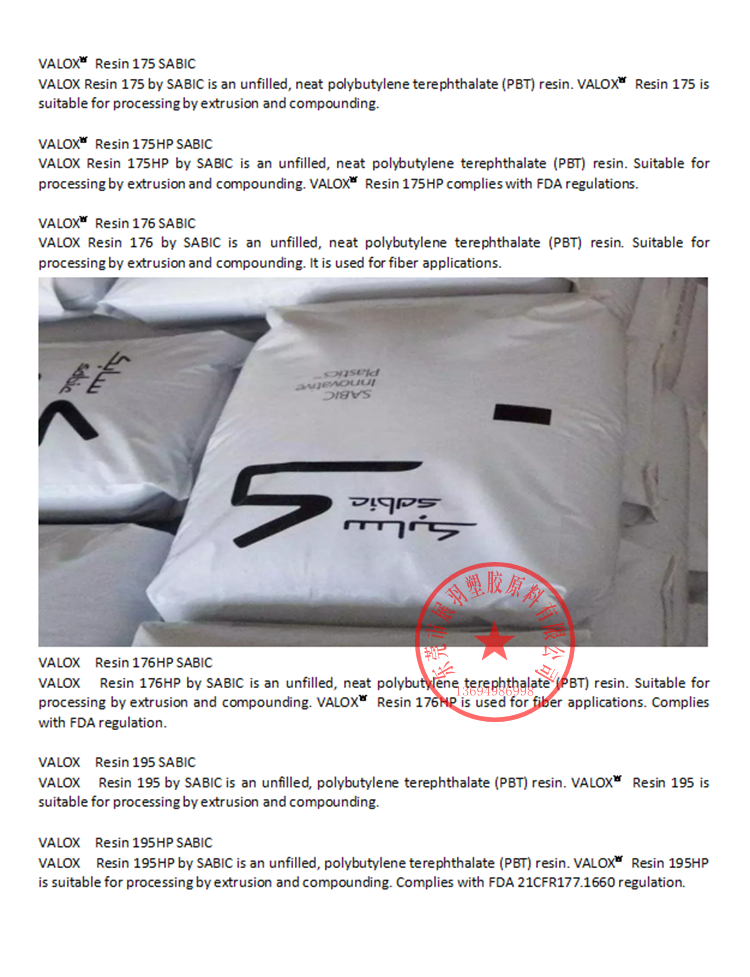 VALOX Resin 175 SABIC 175HP 聚對苯二甲酸丁苯二甲酸酯(PBT)樹脂