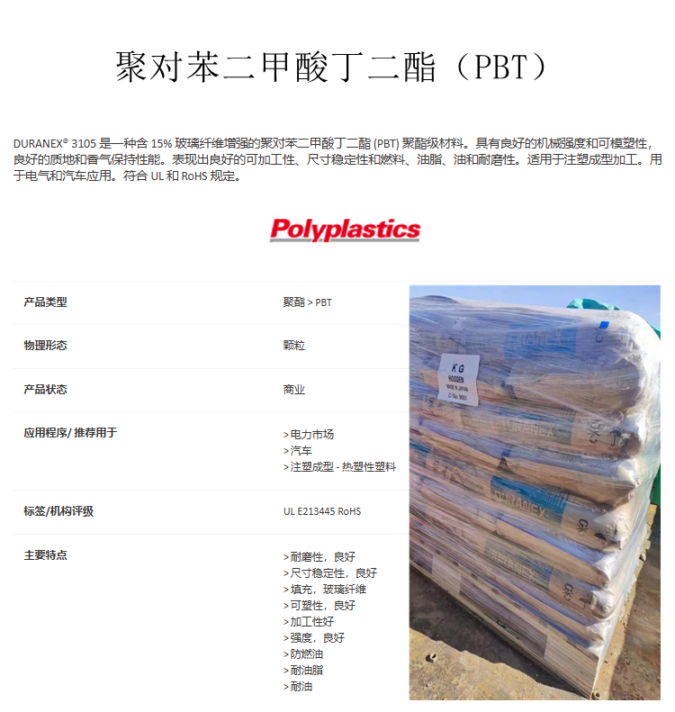 寶理 DURANEX® PBT 3105 EF2001 玻纖GF15 汽車部件 電子電器 家電應(yīng)用