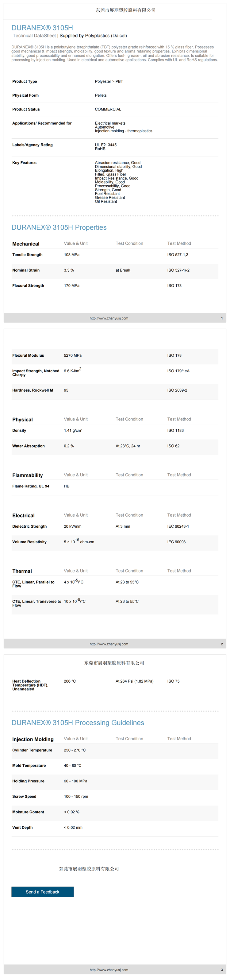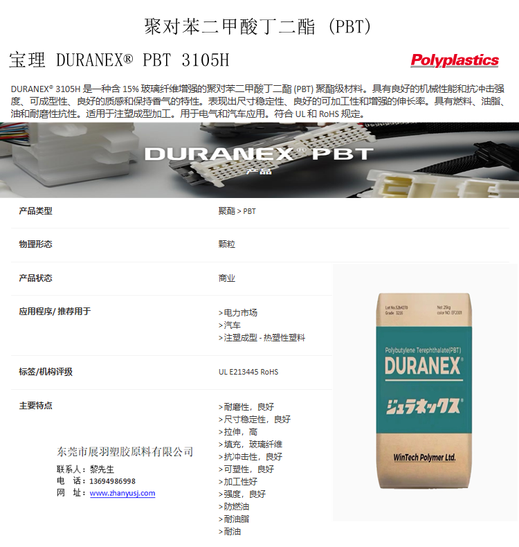 寶理 DURANEX® PBT 3105H 玻璃纖維15% 高流動性 高韌性 防燃油 電氣和汽車應(yīng)用 東莞市展羽塑膠原料有限公司