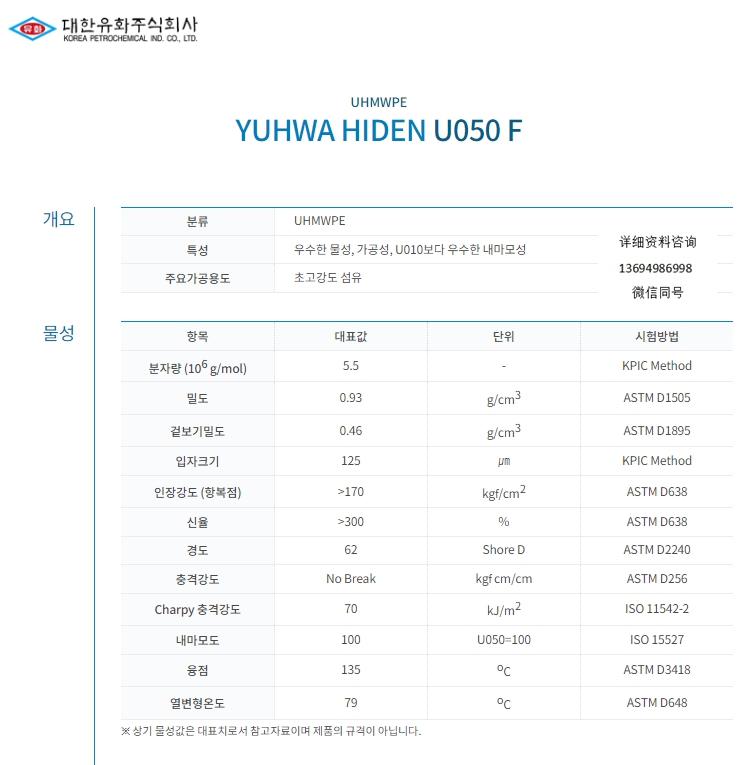 UHMWPE 大韓油化 YUHWA HIDEN U050F 超高分子量聚乙烯