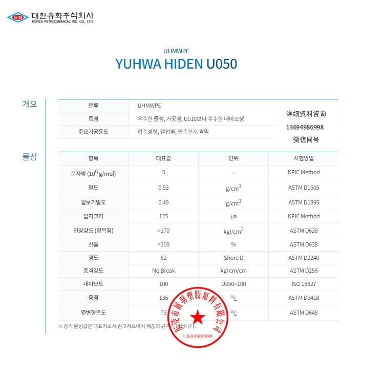 UHMWPE 大韓油化 YUHWA HIDEN U050 超高分子量聚乙烯 模壓成型