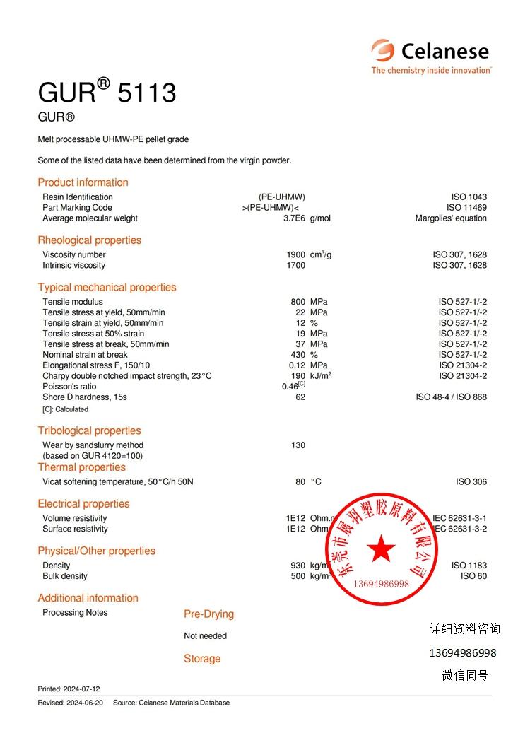 美國(guó)塞拉尼斯 GUR 5113 可熔融加工的 UHMWPE顆粒 超高分子量聚乙烯