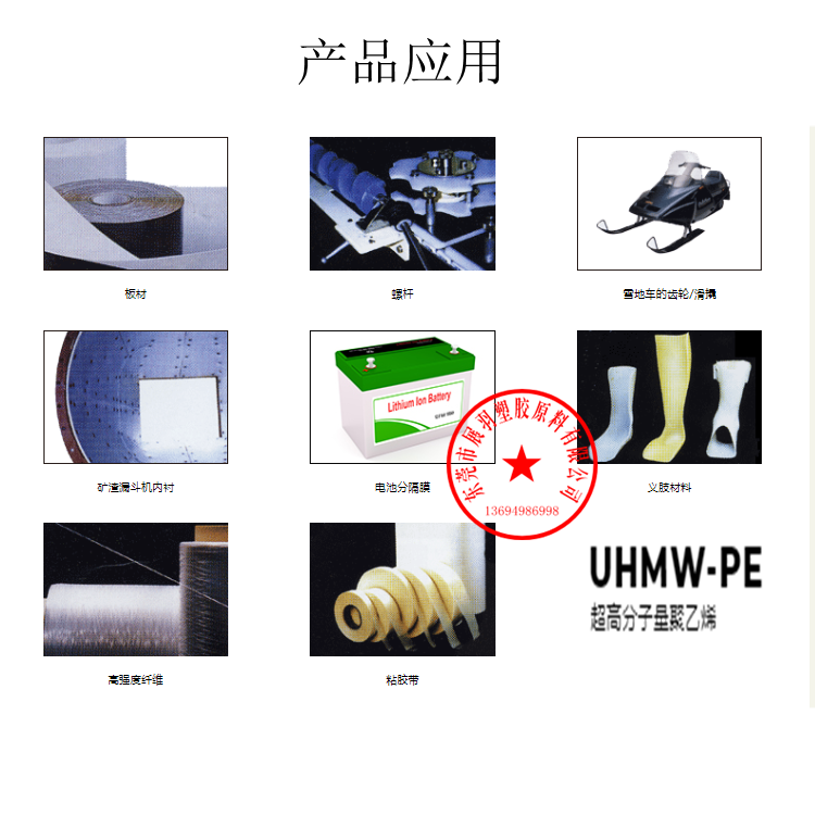 UML板、螺桿、雪地車的齒輪/滑撬、礦渣漏斗機(jī)內(nèi)襯、電池分隔膜、義肢材料、高強(qiáng)度纖維、粘膠帶