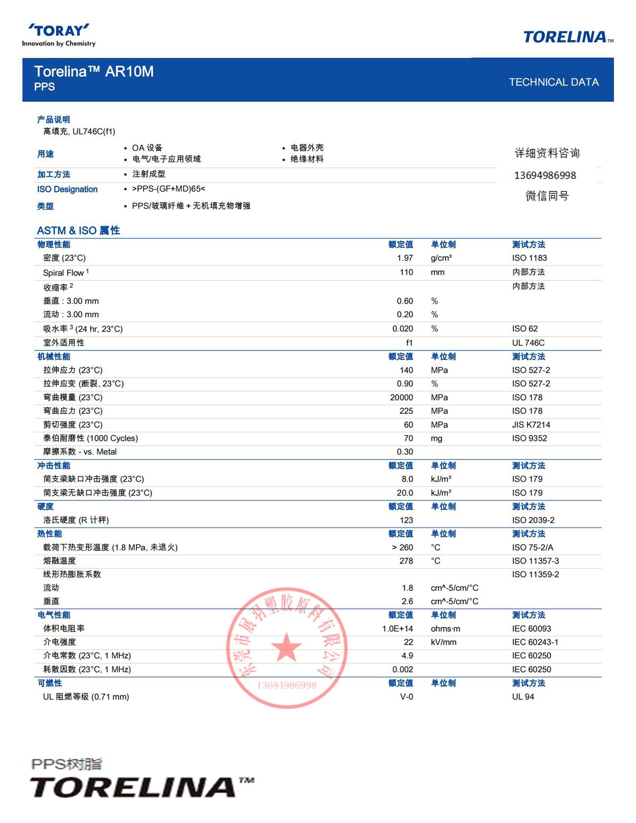 Torelina AR10M Toray PPS-(GF+MD)65 玻璃纖維+無機(jī)填充物增強(qiáng) 聚苯硫醚