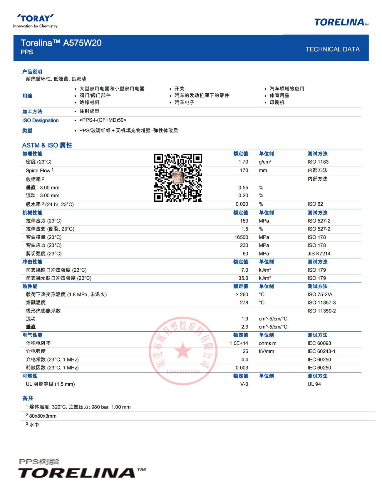 Torelina A575W20 日本東麗 耐熱循環(huán)性 低翹曲 PPS-I-(GF+MD)50 聚苯硫醚
