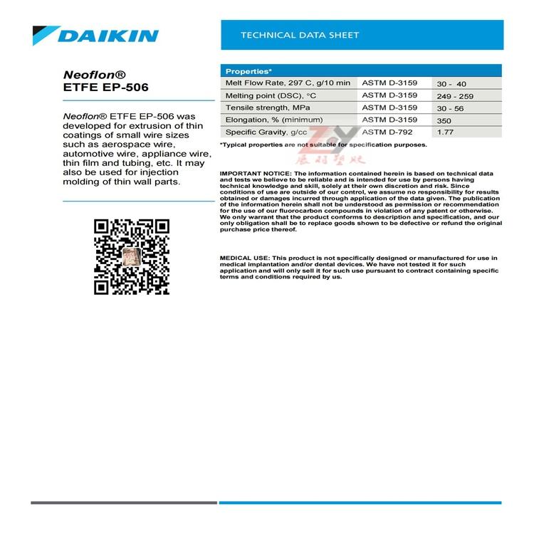 ETFE EP-506 日本大金 NEOFLON 四氟乙烯(TFE)和乙烯的共聚物