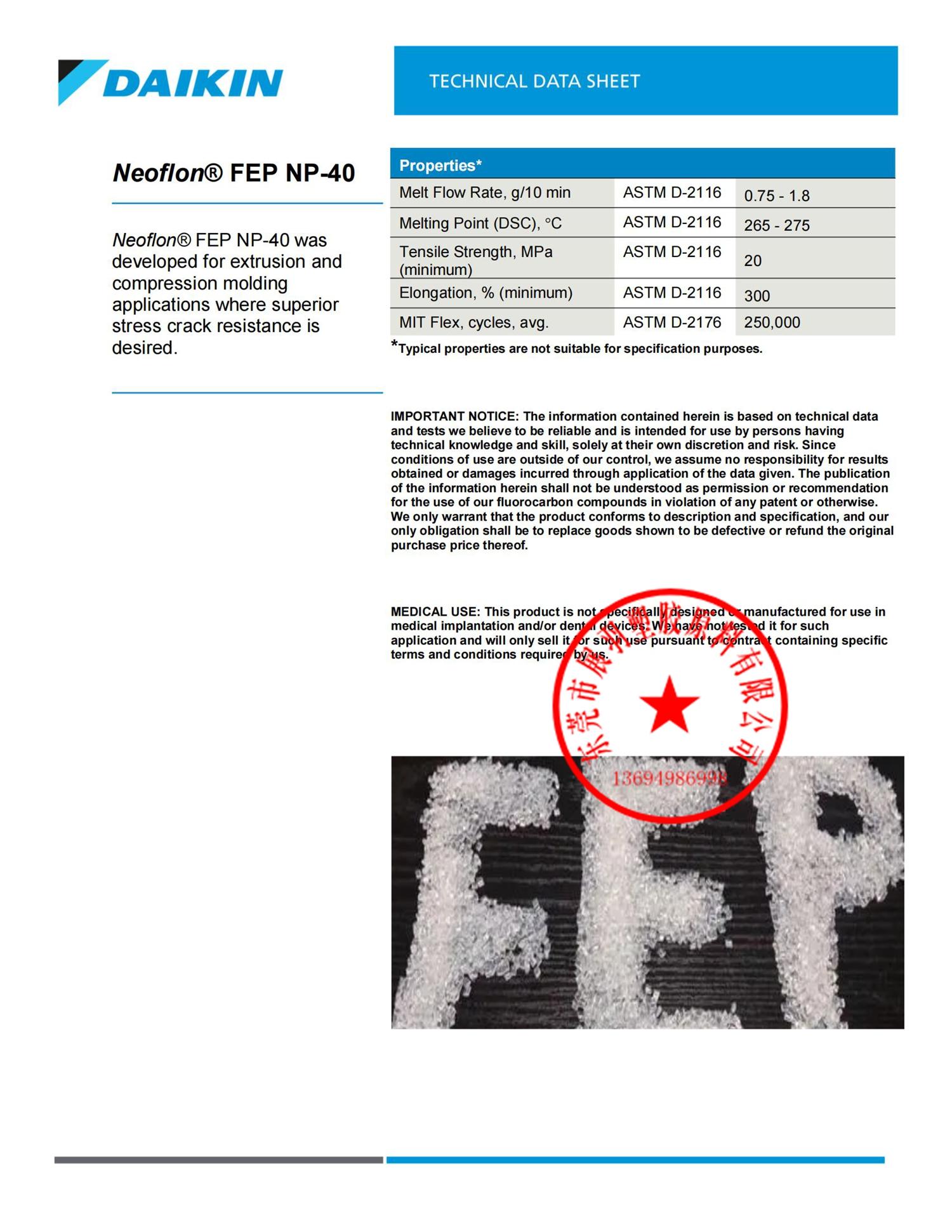 NEOFLON FEP NP-40 新氟聚氯乙烯 應力抗裂性 擠壓和壓縮成型