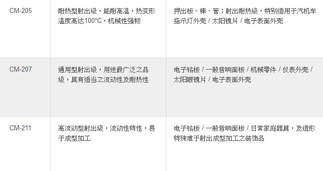 奇美壓克力(ACRYREX)PMMA,乃是奇美公司,以其三十年制造壓克力板之經(jīng)驗(yàn),引進(jìn)美國連續(xù)制程技術(shù),以丙烯酸甲酯(MMA)為主要原料,而制造成功之模塑料,具有良好之耐候性與耐熱性,及極高之透明度與光澤度,同時(shí)具有穩(wěn)定之物理、化學(xué)、光學(xué)與電學(xué)等特性??蓮V泛地使用于電子面板、機(jī)械零件、鐘表面殼、汽機(jī)車指示燈、電訊器材、絕緣零件以及太陽眼鏡等。