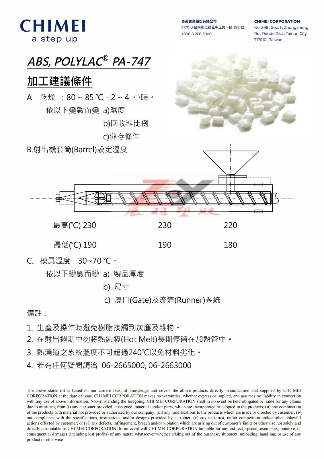 臺(tái)灣奇美 PA-747 超高沖擊強(qiáng)度 ABS樹脂 摩托車擋泥板/鞋跟/雪地運(yùn)動(dòng)用品